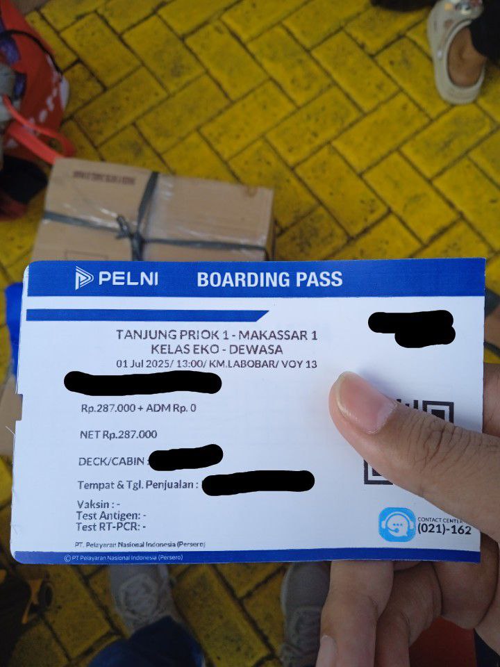 Alasan saya naik kapal laut kali ini sangatlah simpel: ini bukanlah pertama kalinya saya naik kapal milik Pelni. Terakhir kali saya naik kapal Pelni adalah pada tahun 2019, di mana pada saat itu tiket pesawat sedang mahal-mahalnya. Selain itu, saya tergoda dengan promo diskon 50 persen dari Pelni untuk semua rute hingga akhir Juli 2025, dan saya tak ada masalah jika harus menghabiskan waktu tiga hari di perjalanan. Jika harga tiket naik pesawat dari Jakarta ke Makassar saat ini mulai dari 1.3 juta Rupiah, saya mendapatkan tiket kapal laut kali ini seharga 287 ribu Rupiah saja. Empat kali lipat lebih murah.