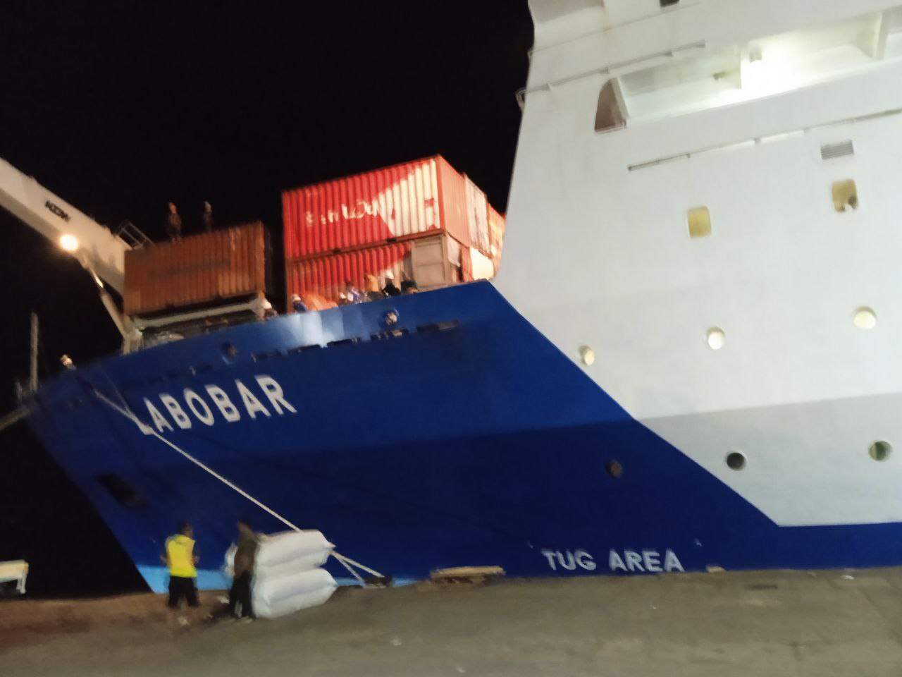 Foto bagian depan KM Labobar saat sandar di Pelabuhan Makassar.