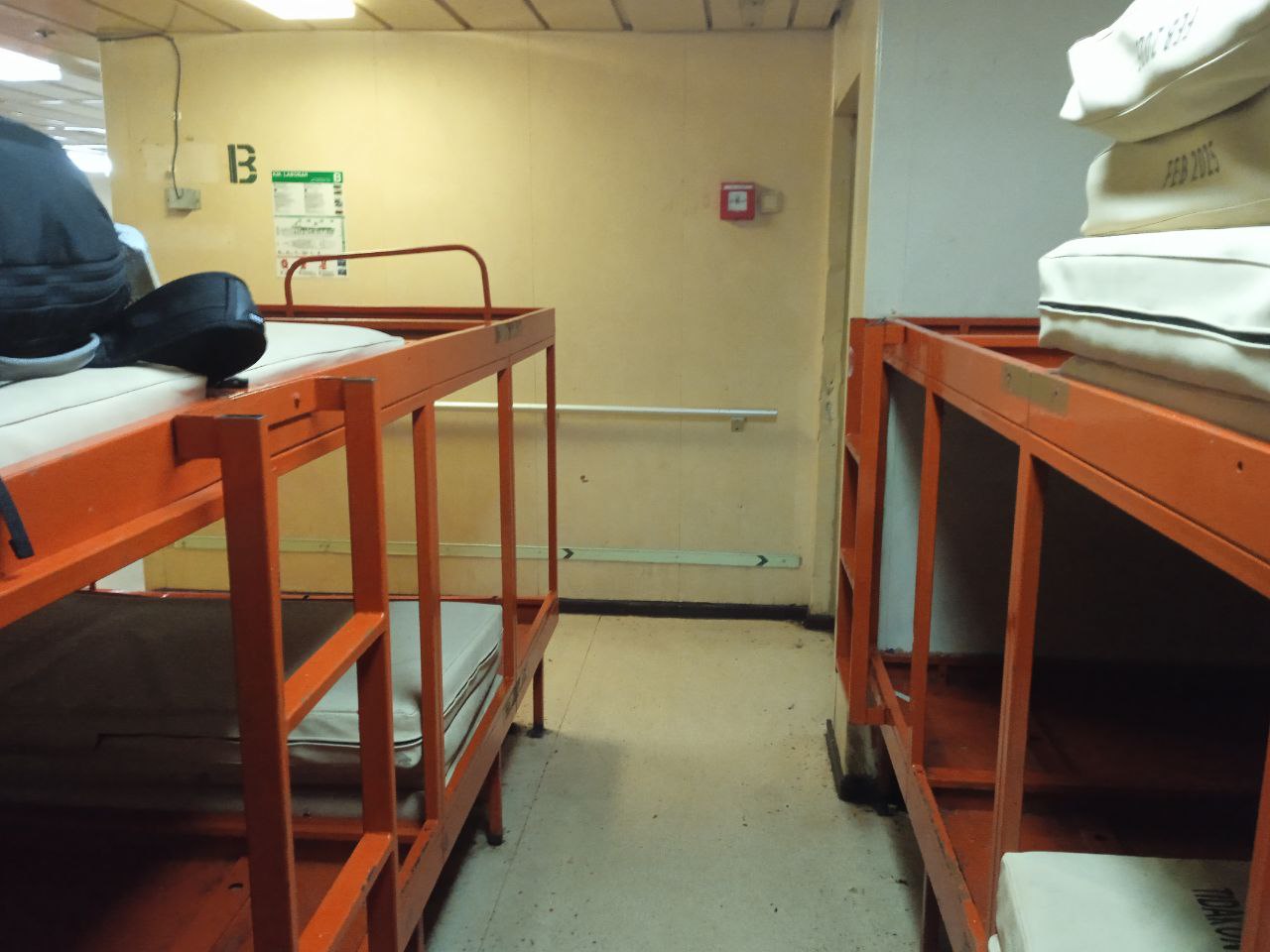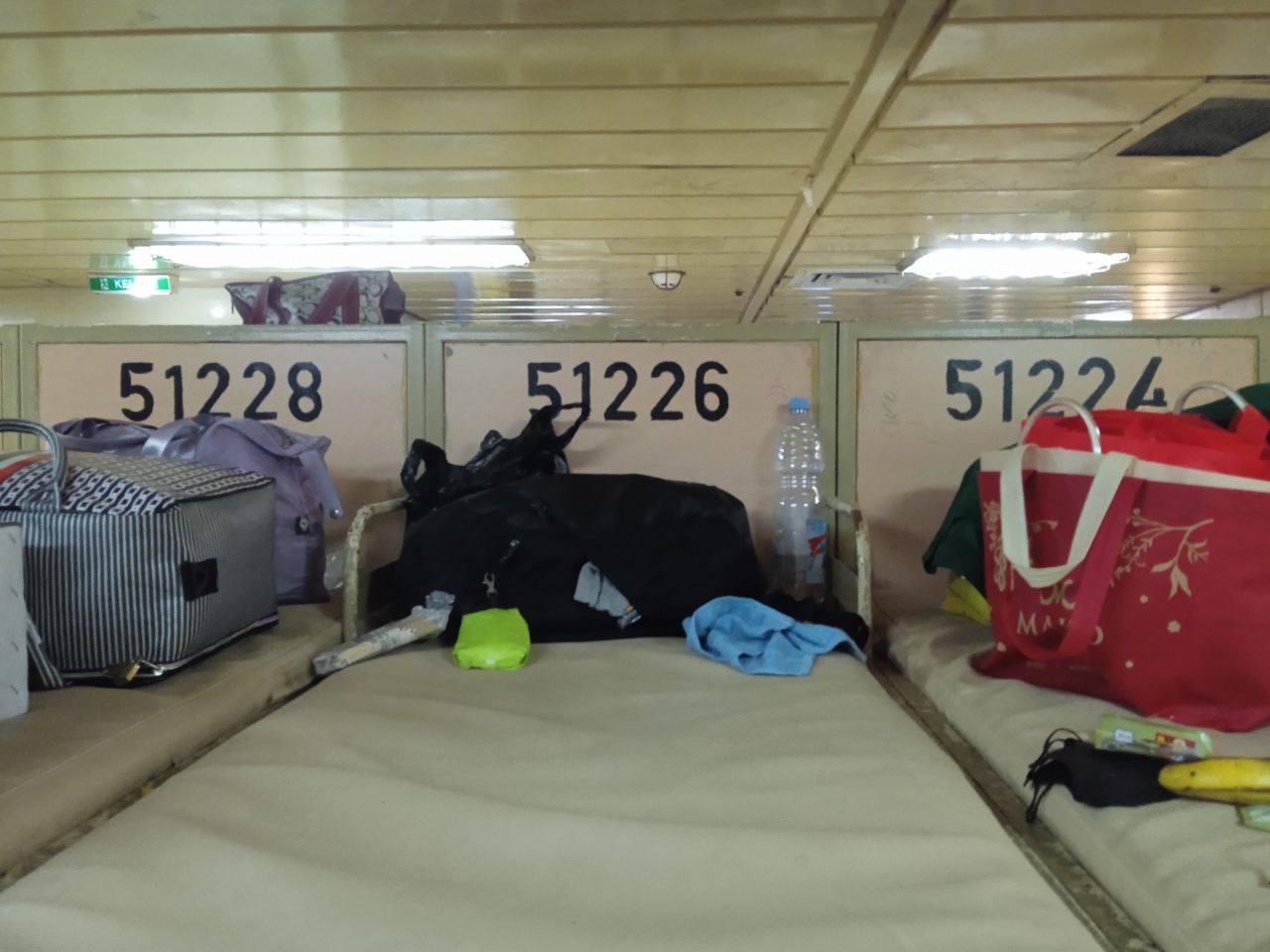 Awalnya saya menempati bagian depan di dek 2 kelas ekonomi, namun karena udaranya pengap dan bau, AC-nya pelan, serta saya mual lama-lama di sana, saya pun mencari ranjang kosong di dek 5 pada kelas yang sama. Setidaknya di sana ada jendela, udaranya tak sepengap di dek 2, dan AC-nya cukup sejuk.