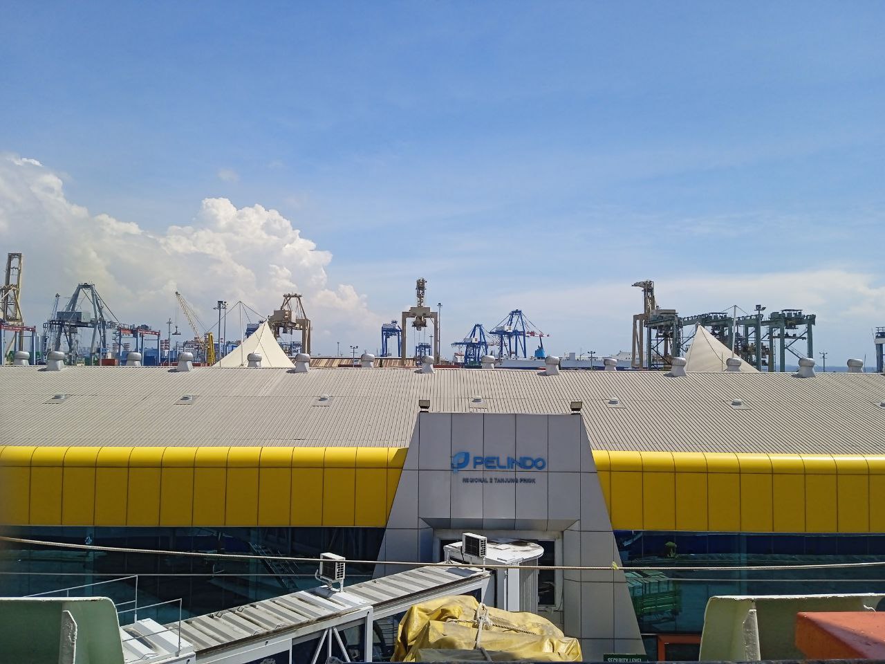 Pemandangan Pelabuhan Tanjung Priok dari dek 7 KM Labobar, 30 menit sebelum keberangkatan.