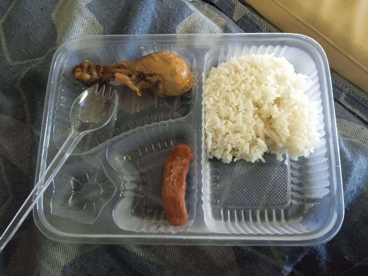 Karena kapal berangkat pada siang hari, para penumpang belum dapat diberikan makan siang oleh petugas. Sekitar satu jam setelah kapal berangkat, saya pun menyeduh cup noodle di dek 4, tempat air panas berada, namun satu jam setelahnya saya pun merasa mual, mungkin karena ini kali pertama saya makan cup noodle lagi setelah sekian tahun lamanya. Saya pun minum obat maag dan kembali tidur di ranjang saya hingga waktu makan malam.