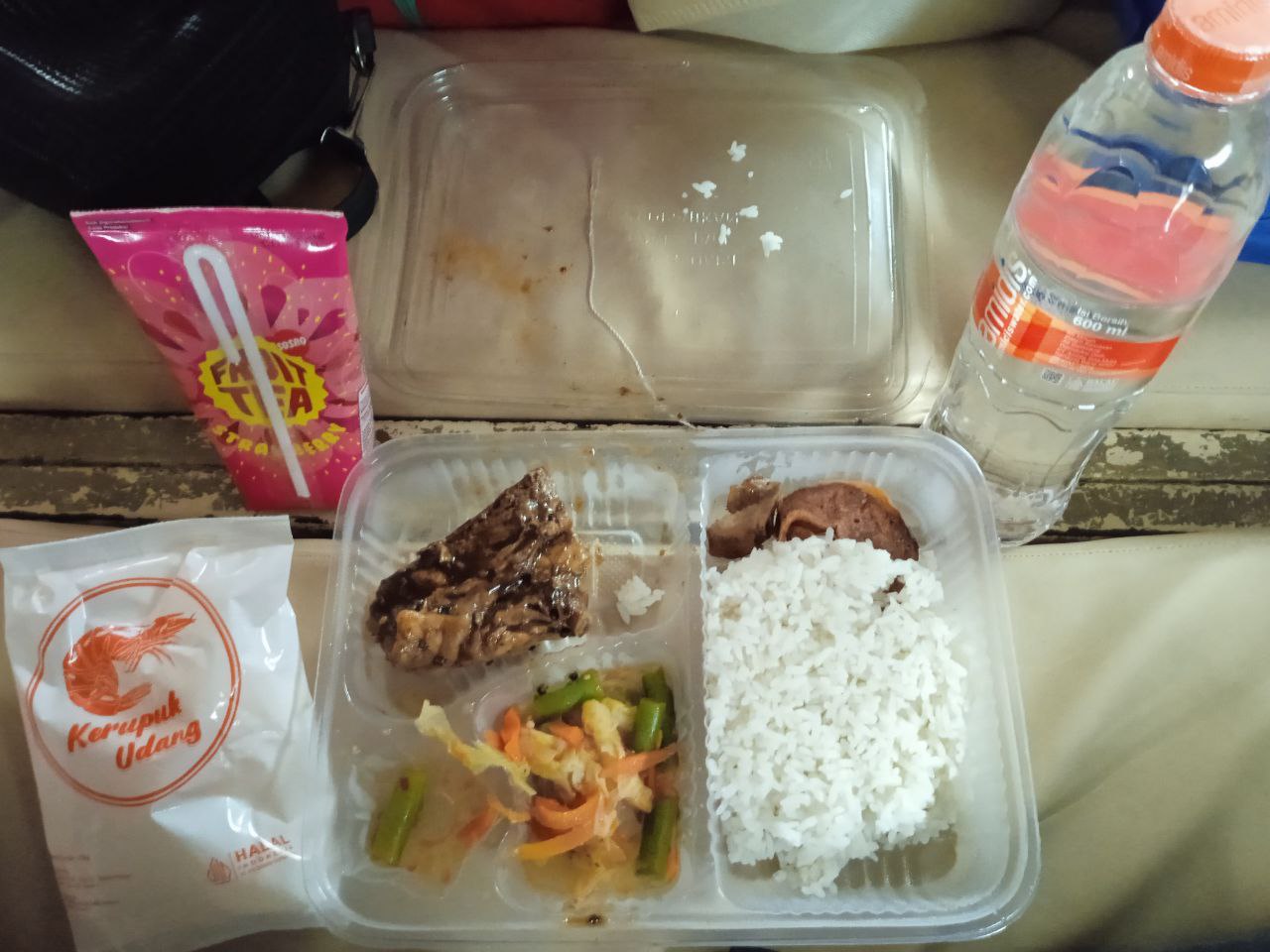 Saat waktu makan malam tiba, saya hanya duduk di atas ranjang saya sambil menyantap bekal yang saya bawa dari Jakarta, tanpa pergi ke dapur kapal untuk mengambil makan malam. Setelah saya makan, petugas mulai datang untuk memeriksa tiket para penumpang, dan setelahnya saya kembali tidur.